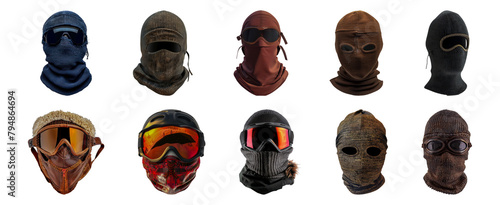 Assorted winter balaclavas and ski masks cut out png on transparent background