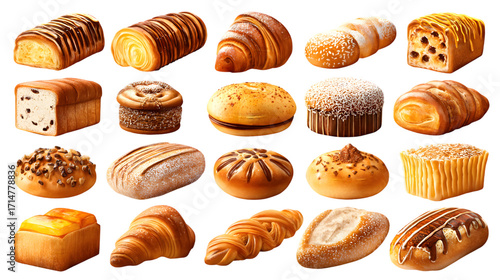 Assortment of baked goods and pastries isolated on transparent background