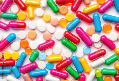 Assortment of colorful pills and capsules isolated on white, assorted pills, prescription