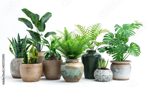 assortment of interior plants with decorative pots isolated on a white background