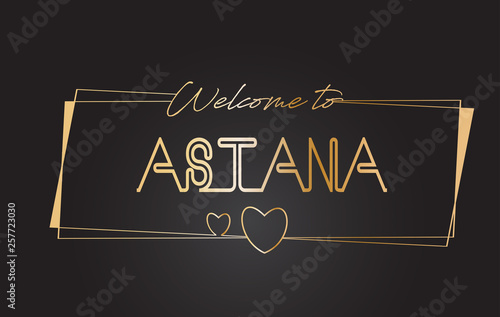 Astana Welcome to Golden text Neon Lettering Typography Vector Illustration.