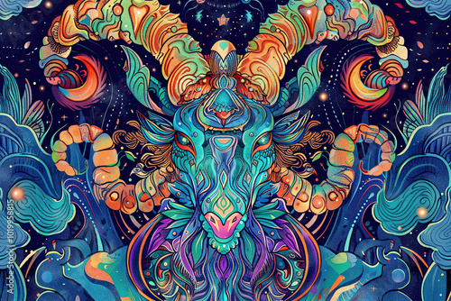 Astrological composition with concept of Capricorn zodiac sign symbol