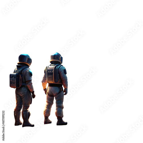 Astronauts cityscape a glimpse into the future isolated on transparent background PNG