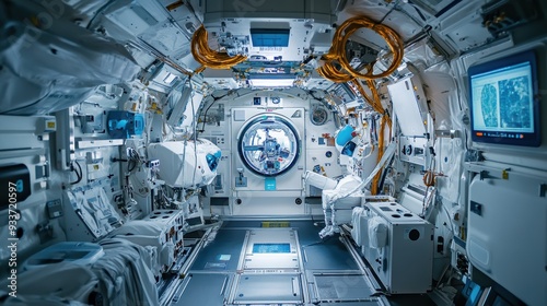 Astronauts Conducting Zero-Gravity Experiments in Space Station Laboratory