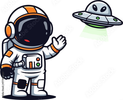 astronauts first contact a cheerful wave to a hovering flying saucer