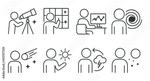 Astronomy and science silhouette icon set. space exploration and research symbols