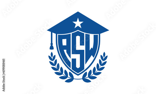 ASW three letter iconic academic logo design vector template. monogram, abstract, school, college, university, graduation cap symbol logo, shield, model, institute, educational, coaching canter, tech