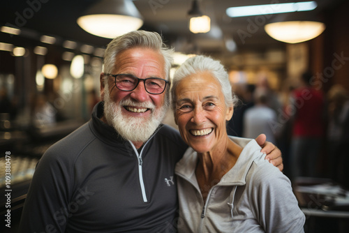 athletic elderly couple in the gym,