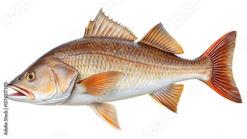 Atlantic Ocean Red Drum Fish Isolated on White Background