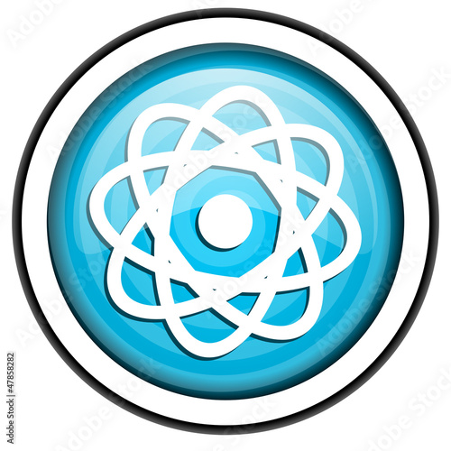 atom blue glossy icon isolated on white background
