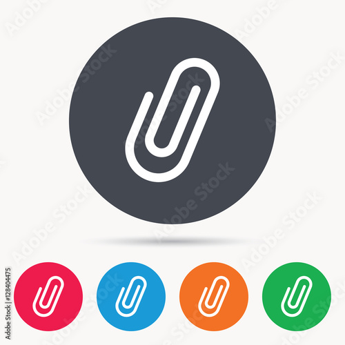 Attachment icon. Paper clip symbol. Colored circle buttons with flat web icon. Vector