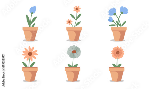 attractive flower bundles in pots. illustration vector