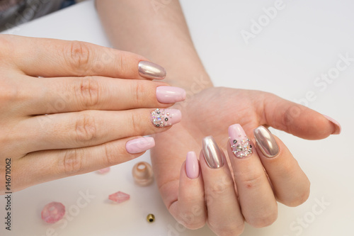 Attractive women's hands. Natural nails with beautiful manicure.