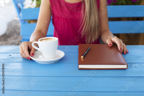 Attractive young business woman working on a coffee break