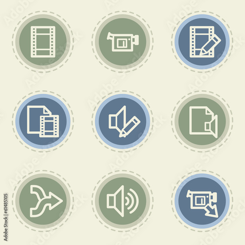 Audio video edit web icon set, vintage buttons