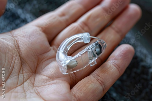 Audiologist provides modern hearing aid for deafness treatment.