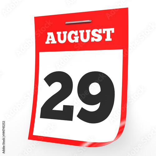 August 29. Calendar on white background.