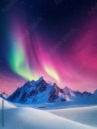 Aurora Borealis Over Snowy Mountains