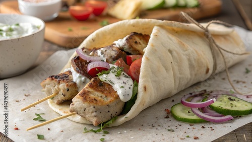 Authentic Greek Souvlaki Wrapped in Warm Pita Bread