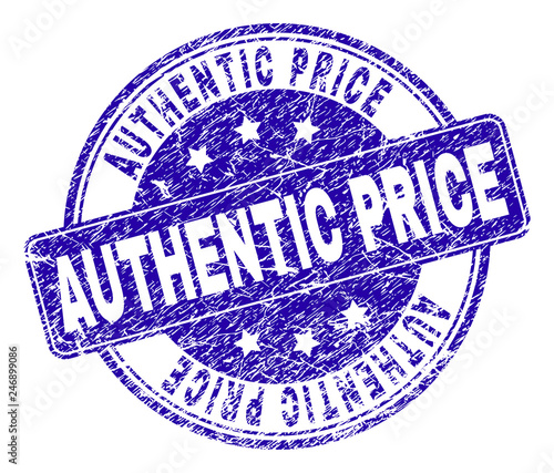 AUTHENTIC PRICE stamp seal watermark with grunge texture. Designed with rounded rectangle and circles. Blue vector rubber watermark of AUTHENTIC PRICE tag with corroded texture.