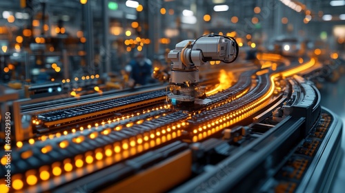Automated Manufacturing Process: Robotic Arm on Assembly Line