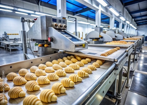 Automatic Dough Robot on Conveyor Making Puff Pastry for French Croissants in a Modern Bakery - Smart Food Industry Automation and Production Line Efficiency