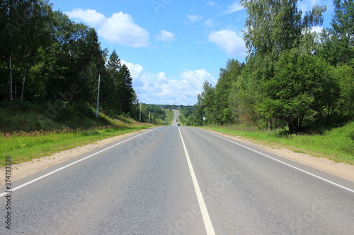 Automobile road through the forest. Russia.