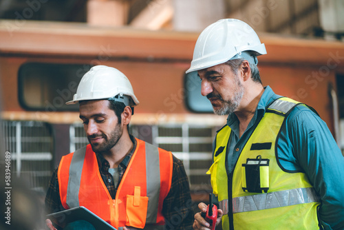 Automotive mechanical assembly, engine, transmission, suspension and breaking system. Automotive engine assembly line is in production. Car Assembly by parts, Diesel locomotive engine in a repair