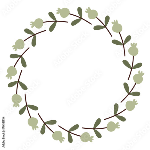 Autumn berry circle frame. Round border made of fall berries. The berries have different shapes and are arranged in a circle. Vector flat isolated on white background.