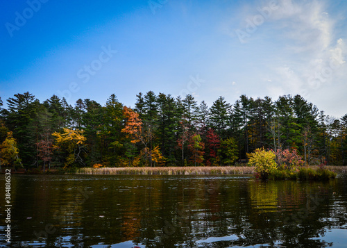 autumn landscape with lake and trees Lake Shaftsbury Vermont