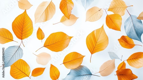 Autumnal Leaf Scatter: A Colorful Fall Arrangement on White
