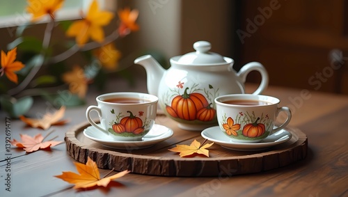 Autumn-themed Tea Set with Pumpkin Design in Warm Colors for Cozy Seasonal Decor