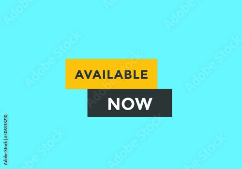 available now text web button template. available now sign icon label colorful
