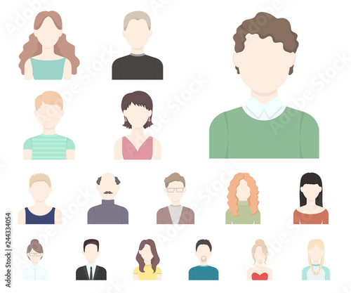 Avatar and face cartoon icons in set collection for design. A person's appearance vector symbol stock web illustration.