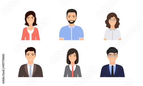 Avatar business people.Person icons. Set office men, women. Faces corporate characters in flat design. Cartoon team male, female workers isolated. Collection portrait businessmen. Vector illustration