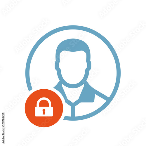 Avatar icon, social icon with padlock sign. Avatar icon and security, protection, privacy symbol