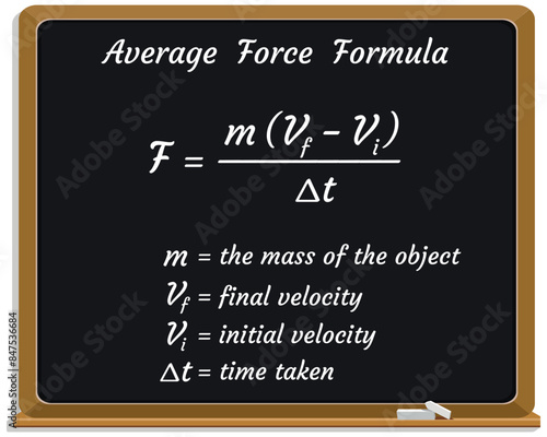 Average Force Formula on a black chalkboard. Education. Science. Formula. Vector illustration.