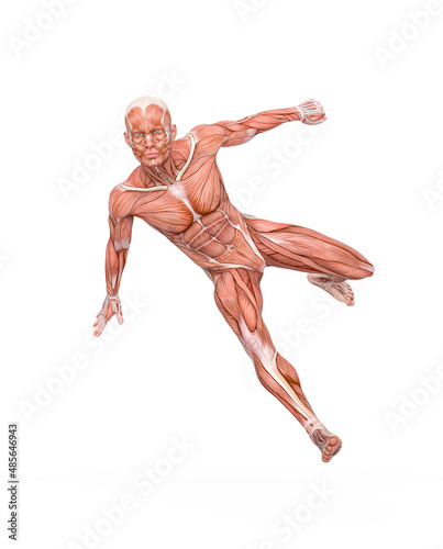 average man muscle maps is doing a parkour pose number five