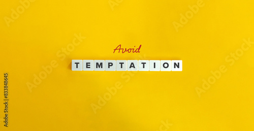 Avoid Temptation Phrase. Concept of Self-control and Discipline. Text on Block Letter Tiles.