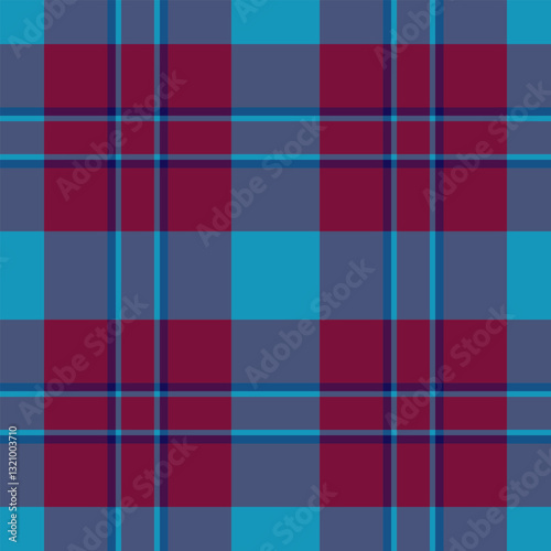 Awesome tartan fabric plaid, border textile background pattern. 60s texture vector seamless check in blue and cyan colors.