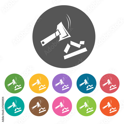 Axe cutting wood icons. Camping hiking set. Round colourful 12 b