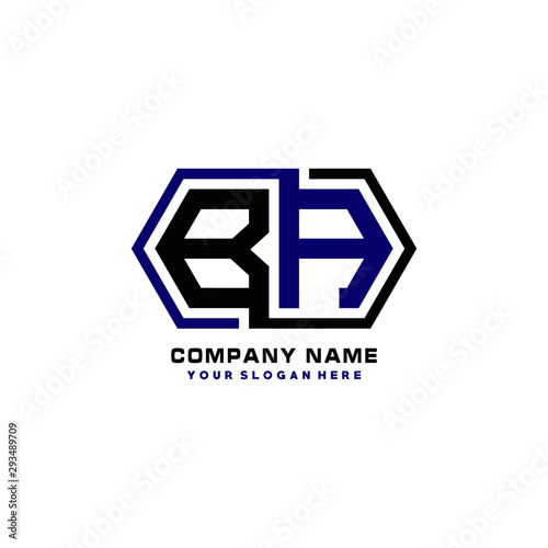 BA initial letters looping linked hexagon elegant logo color blue, black, yellow