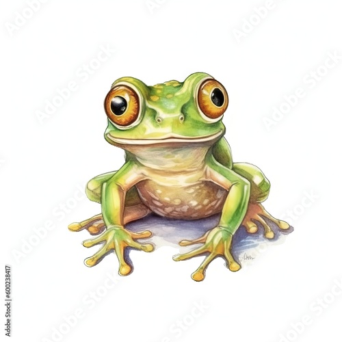 Baby Frog watercolor with ink outline on white background, high detailed (generative AI)