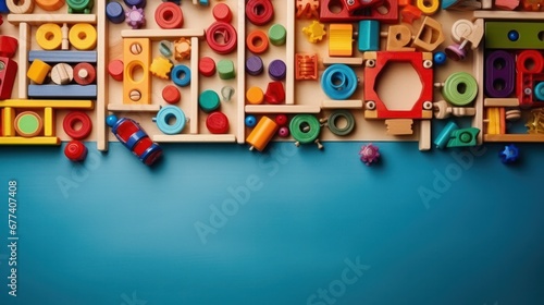 Baby kids toys frame on background, Toy many colorful educational wooden. play, Top view, executive function, kid, skill, education, intelligence quotient, emotional quotient, childhood, development