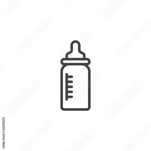 Baby milk bottle line icon. linear style sign for mobile concept and web design. Feeding bottle with milk outline vector icon. Symbol, logo illustration. Pixel perfect vector graphics