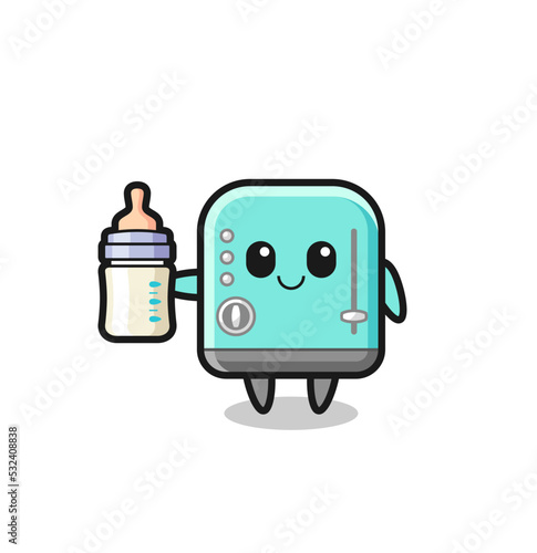baby toaster cartoon character with milk bottle