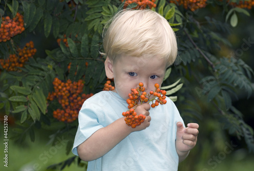 Baby with mountain ash berries