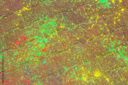 Background of colorful Holi powder on the ground