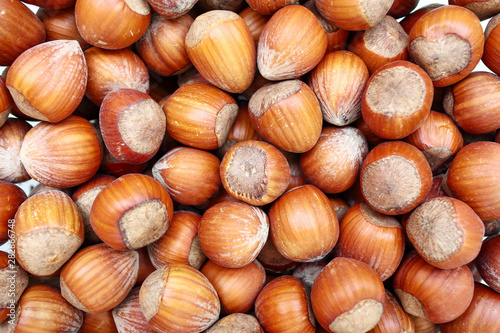 Background of large hazelnuts closeup