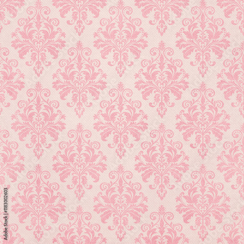 Background paper or fabric, with floral damask and baroque, seamless ornamental pattern